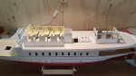 | November 2020 Zwischenzeitlich hat sich einiges getan. Die Fenster wurden mit Rahmen versehen und alles wurde grundiert und gespritzt. Die beiden Hauptdecks sind erstellt und auch beplankt. Die Aufbauten des Hauptdecks sind fast fertiggestellt und ebenfalls weiss gespritzt. Jetzt ist die Sitzbank im Heckbereich dran. Da sich das mitgelieferte Holzmaterial als absolut unbrauchbar (sehr brüchig und instabil) erwiesen hat, habe ich mich wieder dem Kunststoff zugewandt. Bei so kleinen Teilen ist das einfach stabiler und weniger brüchig. Wird ja sowieso braun gespritzt, man sieht also schlussendlich keinen Unterschied. |